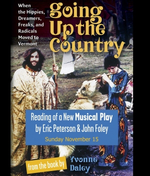 Inspired by Yvonne Daley's book by the same name, the play explores How the Counterculture Changed Vermont and Offers Hope for America. Going Up the Country begins when the Hippies, Dreamers, Freaks, and Radicals Moved to Vermont. From the inventors of the Jogbra to Ben & Jerry's to Bernie, you may be surprised who's hunkered down in our Vermont Hills.