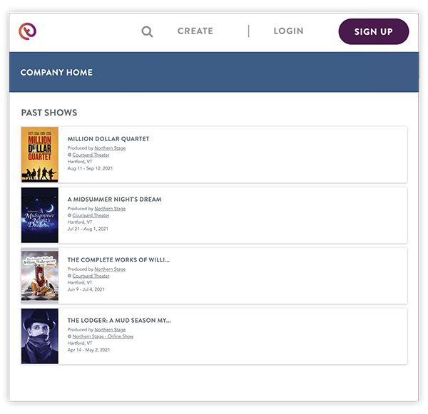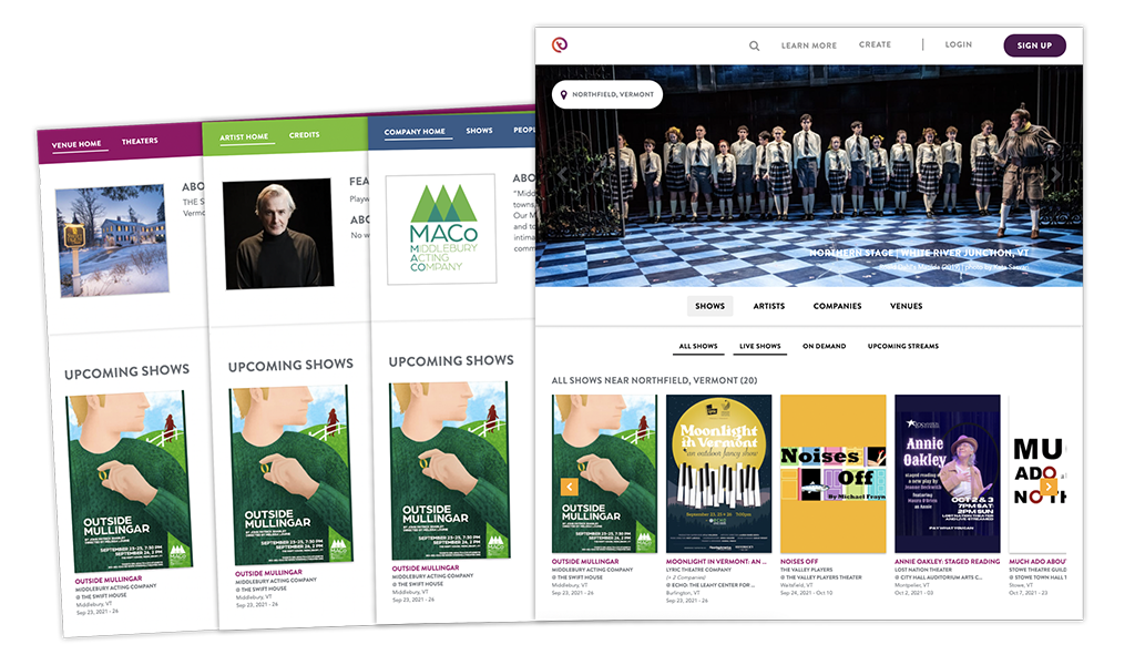 Your upcoming show will display on our homepage, and on every company, artist, or venue page, linked to your show!
