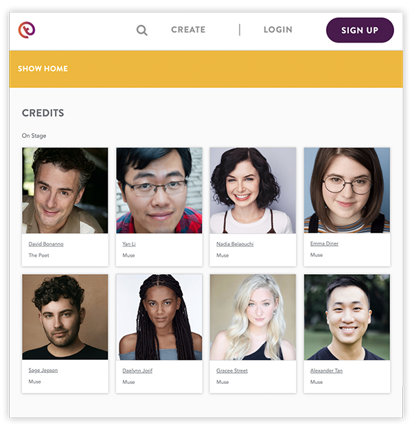 Your biggest fans are coming to your show because of the artists involved. Your “on stage” and “off stage” credits. TheaterEngine is the only event listing site that prominently showcases the individual artists that make your show happen while linking to profile pages that your artists can claim and manage.