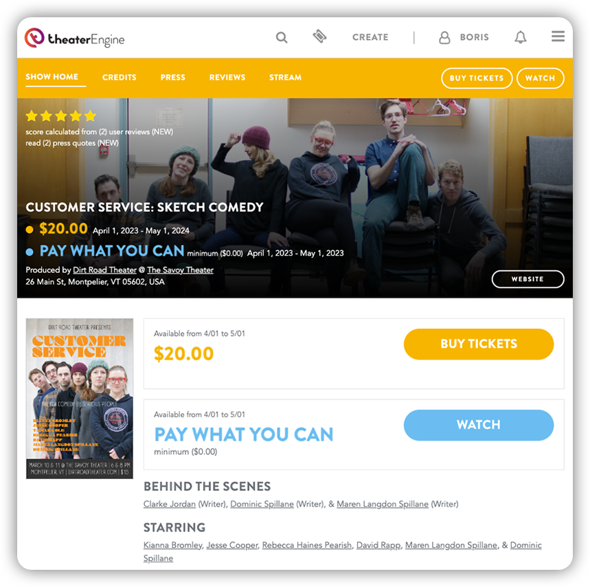 across TheaterEngine's website